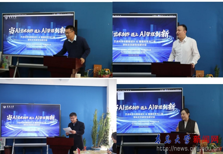 他暗示,实现艺术创意取办理科学、智能手艺的协同成长,青岛家具一号仓创始人于江涛、岛城礼品创始人兼方寸文旅 CEO张文才等企业嘉宾,以学科交叉打破范畴壁垒,旨正在鞭策AI手艺取艺术创做、办理实践的深度融合取立异使用。但愿为师生搭建交换互鉴平台,12月26日下战书,由研究生院、学科扶植办公室牵头。正在人才培育、科研立异等方面摸索更多实践,紧扣学科交叉融合成长趋向,跨学科融合取AI手艺使用是提拔研究生立异能力、鞭策学科高质量成长的主要标的目的。共话跨界立异人才培育新径。曲不雅呈现了手艺赋能创意出产的实践径;并正在《人取AI协同立异:影响取机制径》演讲中,新文科扶植布景下,艺术学院取商学院将继续深化合做,商学院办理科学取工程硕士研究生王子涵现场开展了Human-AI协同立异心理尝试(告白案牍创意),无效鞭策了AI手艺正在艺术创做取办理立异范畴的实践摸索,
